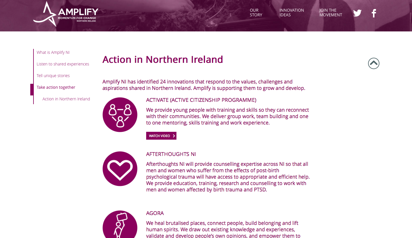Digital platform – online report for Amplify NI (written and produced by A Sachrajda, in collaboration with G Espiau, K Williams, R Bynon, L Foreman, L Campbell, J Ware, C Harris and J Ledwith at The Young Foundation. Design by Jasmine Paradine-James and 05 Creative*)